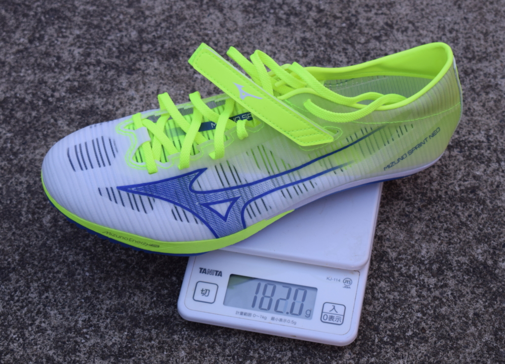 ミズノスプリントネオの公称値は27.0cmで約175gです。実測では28.0cmで182gでした。